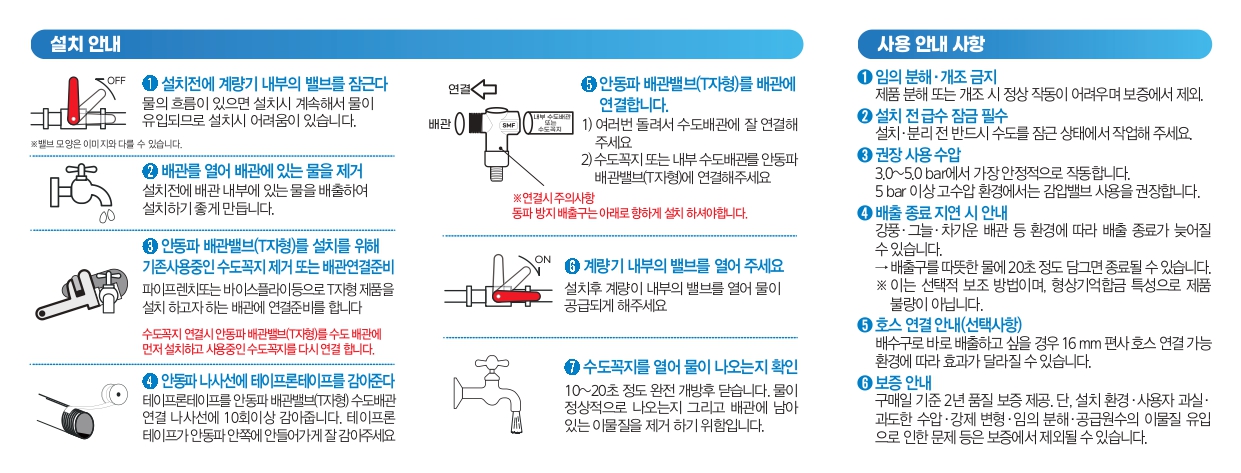 | 동파방지 작동 반응온도(℃) (Freeze-protection Activation Temperature) | 배출 시작 (Discharge Initiation Temperature) 0 ±1 | |